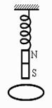 20.如图所示,轻质弹簧上端固定,下端悬挂一根条形磁铁,在磁铁正下方不远处的
