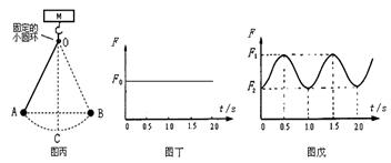 时间的关系图像如图丁所示;④让小铁球以较小的角度在竖直平面内的A、B之间摆动,从计算机中得到拉力随时间的关系图像如图戊所示。