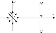 向四周均匀发射速度大小相等、方向都平行于纸面的带