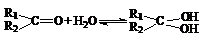 (2)醛酮在水中可生成水合物: 。这是一个可逆反应,平衡状态(平衡的位置)决定于醛酮的结构。若