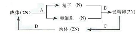 (2)个体发育成熟后通过[ ]____________产生精子和卵细胞。一般情况下,只有同一种生物的精子和卵细胞才能完成B过程,这种现象叫做________________,其原因是不同生物的精子和卵细胞的细胞膜上所含有的________________不同。