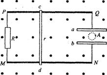 电阻。若导体棒cd以速率V向右匀速运动时,在平行金属板a,b之间有一个带电液滴恰好在竖直平面内做匀速圆周运动。求: