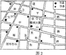 图2为我国北方某城市书店与书亭分布图,读图回答3-5题。