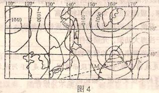 读世界某地区某日海平面等压线分布图4(虚线表示航海线),回答8-10题。
