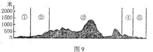 图9是海南岛东西向地形剖面示意图,读图完成2l-22题。