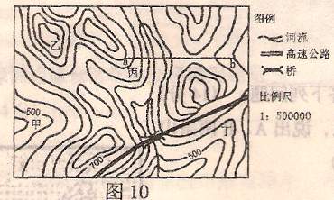 图10为某区域等高线地形图(单位:米),读图完成23-25题。