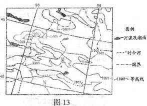 30.我国西北地区地广人稀,资源丰富,在统一的多民族国家发展过程中占有重要地位。读图13,回答下列问题。 (13分)