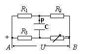 例6:已知如图,R1=30Ω,R2=15Ω,R3=20Ω,AB间电压U=6V,A端为正C=2μF,为使电容器带电量达到Q =2×10- 6C,应将R4的阻值调节到多大?