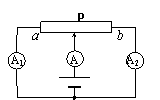 ⑵右图电路中,设路端电压U不变。当滑动变阻器的滑动触头P从a端滑向b端的过程中,总电阻逐渐减小;总电流I逐渐增大;RX两端的电压逐渐增大,电流IX也逐渐增大(这是实验中常用的分压电路的原理);滑动变阻器r左半部的电流I / 先减小后增大。