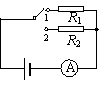 例2:如图,电源的内阻不可忽略.已知定值电阻R1=10Ω,R2=8Ω.当电键S接位置1时,电流表的示数为0.20A.那么当电键S接位置2时,电流表的示数可能是下列的哪些值?