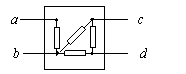 例6:如图所示,黑盒有四个接线柱,内有4只阻值均为6Ω的电阻,每只电阻都直接与接线柱相连。测得Rab=6Ω,Rac=Rad=10Ω。Rbc=Rbd=Rcd=4Ω,试画出黑盒内的电路。