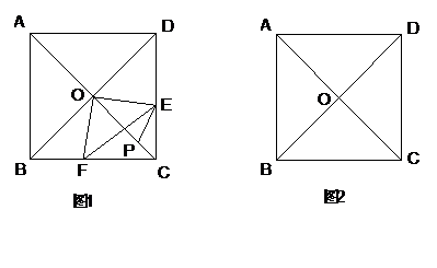 (3)如图2,当∠EOF绕O点逆时针旋转一个角度,使E、F落在CD、BC的延长线上,请完成图形并判断(2)中的结论是否正确?若不成立写出相应的结论。