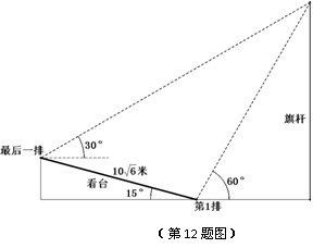 (12)某校运动会开幕式上举行升旗仪式,旗杆正好处在坡度15°的看台的某一列的正前方,从这一列的第一排和最后一排测得旗杆顶部的仰角分别为60°和30°,且第一排和最后一排的距离为