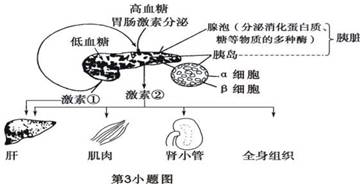 C.激素①和激素②都作用于肝脏,其作用区别在于激素②促进糖元合成,激素①促进糖元分解或非糖物质转化为葡萄糖