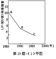 (1)图甲中A→B的种群密度变化率为 ▲ 株/(100m2·a)