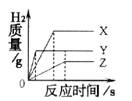 金属中,生成H2的质量与反应时间的关系如右图所示。下列说法中正确的是