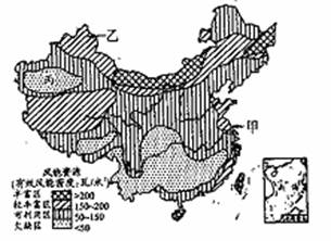 材料三 风力发电前景广阔,但风力发电场占地较多,右图为“我国风能资源分布示意图”。