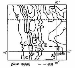 (3)铁路③联系两大洋,促进了该地农牧业的发展,根据图中信息分析其建设的不利自然因素。(2分)