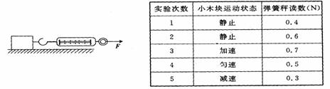 在研究摩擦力的实验中,用弹簧测力计水平拉一放在水平桌面上的木块,木块运动状态及弹簧测力计的读数如下表所示(每次实验时,木块与桌面的接触面相同)则由此表分析可知( )