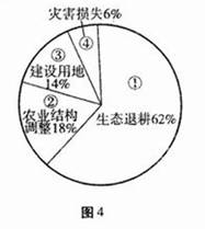 图4为近年来影响我国耕地减少的因素构成图,回答6、7题。