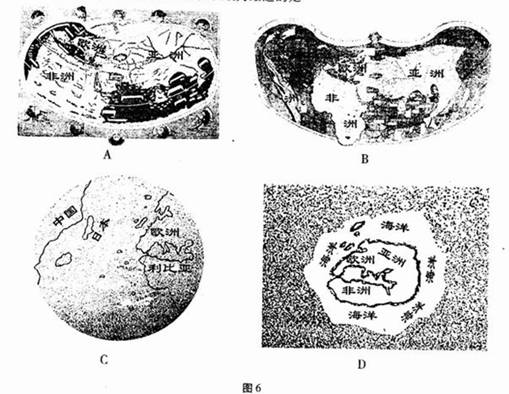 18.以下地图,与哥伦布对地球的认识最为贴近的是