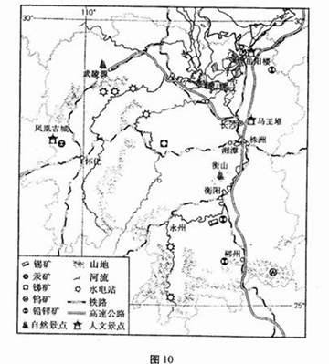 (3)湘南(衡阳、郴州、永州)和湘东(长沙、株洲、湘潭)有色金属工业均较发达,对比分析两地区的优势发展条件。(5分)