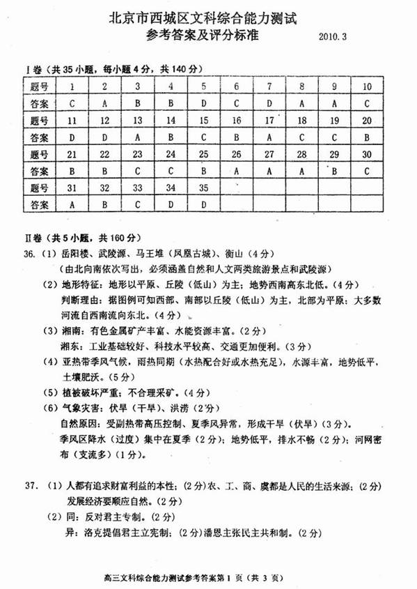 北京市西城区文科综合能力测试