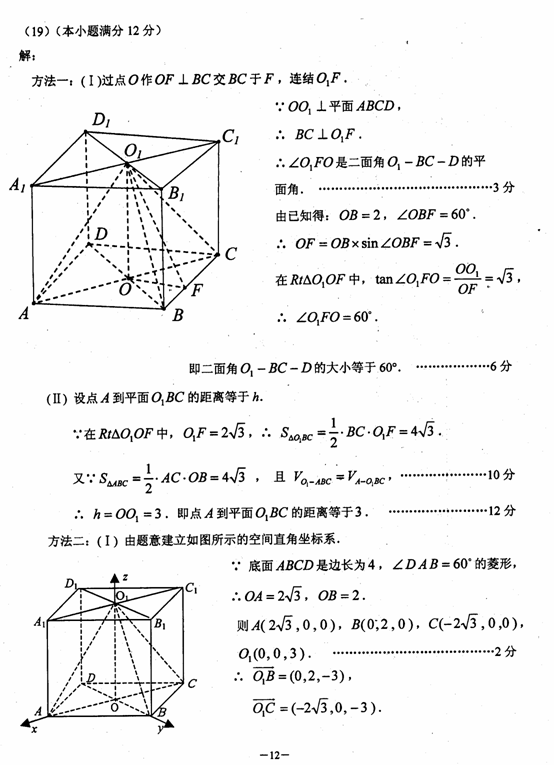 的高为3,底面是边长为4,且∠DAB=60°的菱形,