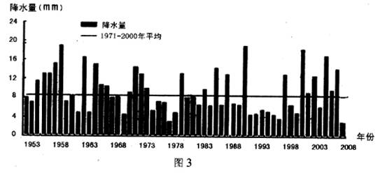 图3为我国东北地区1953-2008年1、2月降水量变化图。读图回答4-6题。