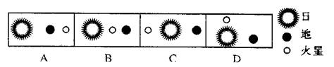 2.当日全食发生时,能反映太阳、地球、月球三者位置关系的是: