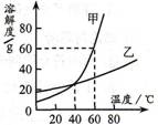 D.60℃时,将等质量的甲乙两种物质的饱和溶液降温到20℃,析出晶体较多的是乙