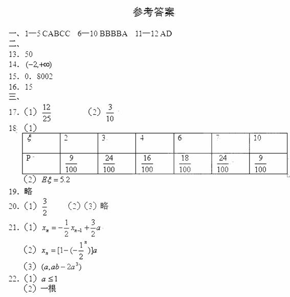18.盒中有大小相同的10个球,其中标号为1的球3个,标号为2的球4个,标号为 5的球3个,第一次从盒中任取一个球,放回后第二次再任取一球(假设取到每球的可能性都相等),记第一次与第二次取到球的标号之和为