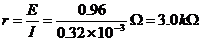 (3)乙同学将理想电流表直接接在一个“水果电池”的两极上时,测得电流为0.32mA。根据前面用电压表测得0.96V,用全电路欧姆定律得: