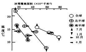 读北半球、南半球和全球月均温与冰雪覆盖面积对应值的分布图回答7-8题