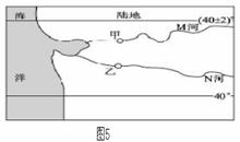 观测图5中是M、N两条河流上的水文站甲、乙,发现,M、N河流的径流有明显的季节变化,关于下列叙述正确的是 ( )