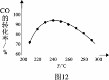 (4)为了寻找合适的反应温度,研究者进行了一系列试验,每次试验保持原料气组成、压强、反应时间等因素不变,试验结果如图12。CO转化率随温度变化的规律是 ,其原因 。