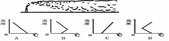 9.从烟囱排出的烟流的扩散的形状与大气的温度有密切的关系,因此在风速较小、地面平坦的地区,可以通过观察烟尘的扩散方式确定大气的稳定程度,观察下面一种烟尘的扩散方式(如下图),与之对应的温度在垂直方向上的变化是