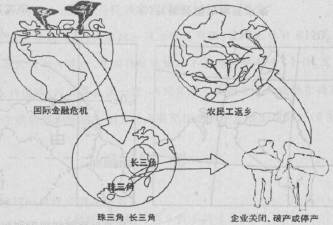 受全球金融海啸影响,中国沿海地区不少工厂停工,近千万民工提前返乡(如图),据此回答19-20题。