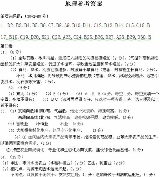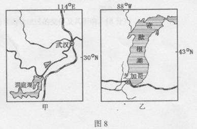 (2)比较武汉、芝加哥两城市兴起和发展的交通区位条件的异同点。(4分)