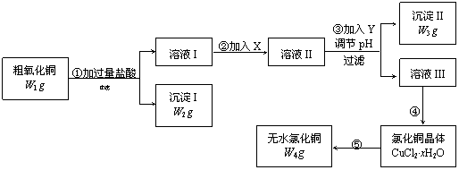 16.(16分)某化学研究性学习小组拟用粗氧化铜(含少量氧化亚铁及不溶于酸的杂质)制取无水氯化铜并测定样品中氧化铜的质量分数,其实验流程如下: