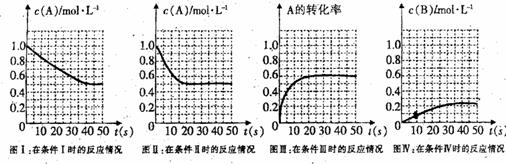 B(g)+C(g);△H=-QKJ·mol-1。当物质A的起始浓度为1.0mol·L-1、物质B、C的起始浓度为0时,物质A的浓度、转化率以及物质B的浓度随反应时间的变化如下列各图所示: