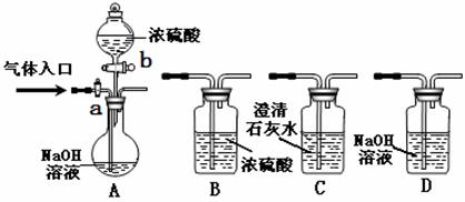 (1)若A中气体入口通入CO和CO2的混合气体,E内放置CuO,欲得到纯净干燥的CO,并验证其还原性及氧化产物,所选装置的连接顺序为___ ___ (填写装置代号)。能验证CO氧化产物的实验现象是____________ ____。
