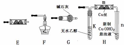 (2)完成(1)实验后,将A中a旋钮关闭,并在E内放置Na2O2,按A→E→D→B→H装置顺序,制取纯净干燥的O2,并用O2氧化乙醇。