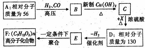 有机物A ~F中,A是链烃,A与H2加成得到烷烃,经测定,该烷烃分子中只有两个-CH3,其一卤代物有两种同分异构体,C与X反应生成D。各物质之是的转化关系如下图所示: