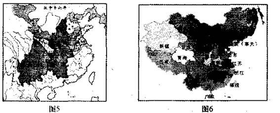14.图5、图6分别为汉代和清代一级行政区划示意图。从汉到清区划密度的变化所反映的本质要素是