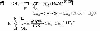外延-醇及卤代烃中,连有羟基(-OH)或卤素的碳原子必须有相邻的碳原子且此相邻的碳原子上还必须连有氢原子时,才可发生消去反应而形成不饱和键。表示为: