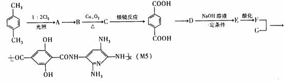 11.M5纤维是美国开发的-种超高性能纤维,在相同的防护级别下,M5纤维比现有的防破片材料轻35%,且防热和防火性能十分出色。据报道,美军士兵佩带的头盔、防弹背心和刚性前后防护板在战争,保住了许多美军士兵的生命。M5纤维是刚杆形又有强力分子间氢键的聚合物,当z是聚合物主链方向时,在x方向y的氢键是其晶体结构的特征。下面是M5纤维的合成路线:(有些反应未注明条什)