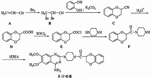 14.(09年江苏化学·19)(14分)多沙唑嗪盐酸盐是一种用于治疗高血压的药物。多沙唑嗪的合成路线如下: