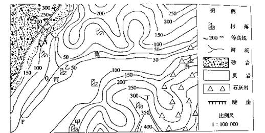 A.PQ段的河流自东北流向西南,灌溉条件便利