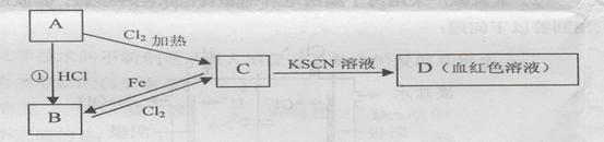 17、(11分)A、B、C、D四种物质都含有一种共同的元素,A是常见的金属,C的溶液呈现黄色,A、B、C、D之间有如图所示转化关系。